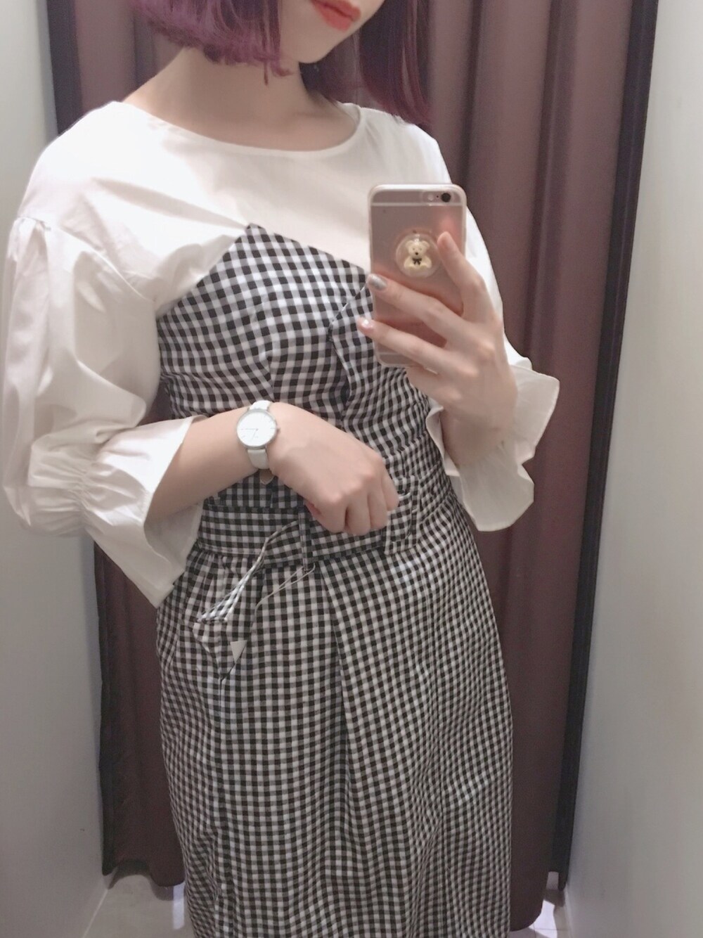 ビスチェがくっついてるブラウス🌸 チェックスカートでセットアップ風に着てみた🕊❤︎