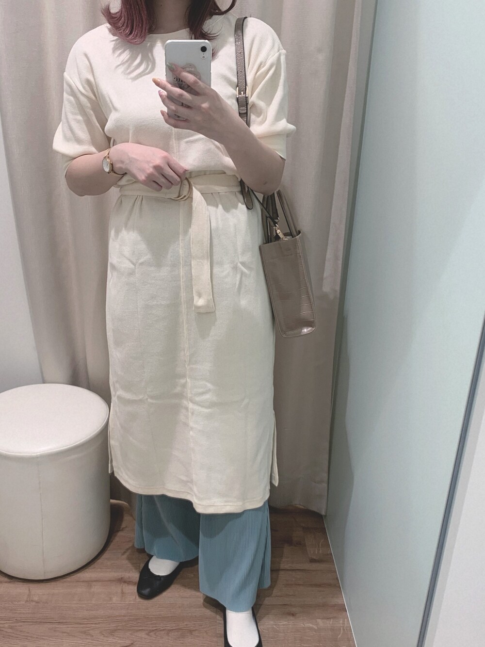 🍦ワンピース -------------------- 透け感:なし(色によっては多少あり) (裏地:なし) 伸縮性:あり 生地の厚さ:普通 ------------------- サイズ感:ゆったりめ 素材感: しっかりしたリブ素材 着心地:リブで伸縮性もあるので動きやすい◎パンツやスカート合わせたレイヤードスタイルもおすすめです🙆♀️💓