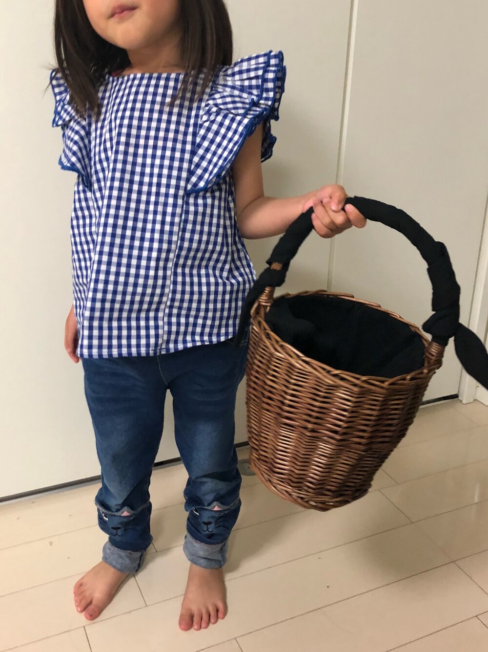 ariのかごバッグ「バケツカゴバッグ」を使ったコーディネート