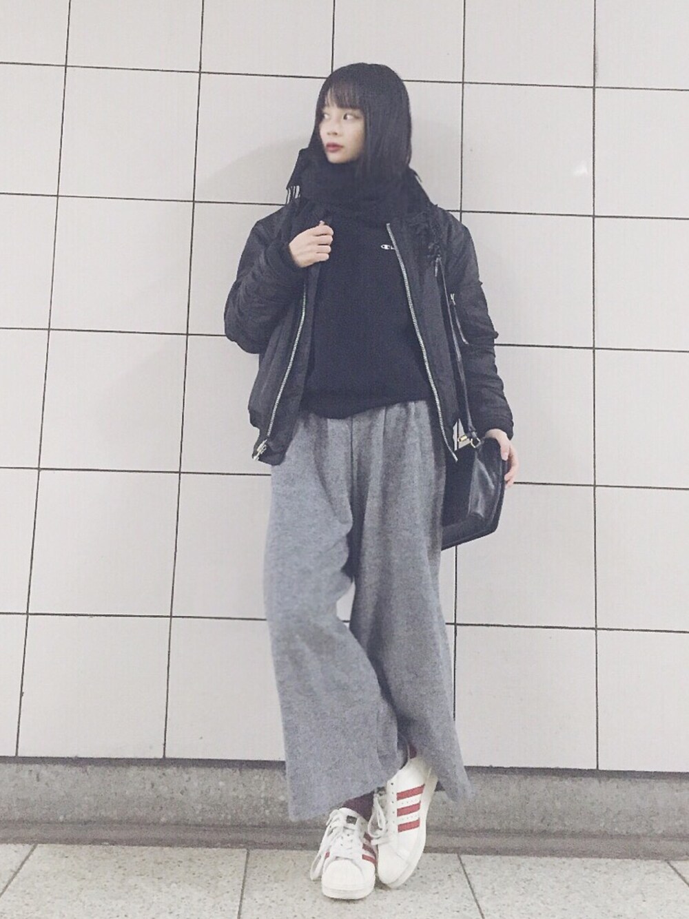 全体的にモノトーンだったので、靴下とスニーカーに赤をプラスして✧ 久しぶりにsuperstar履きました(*^^*)