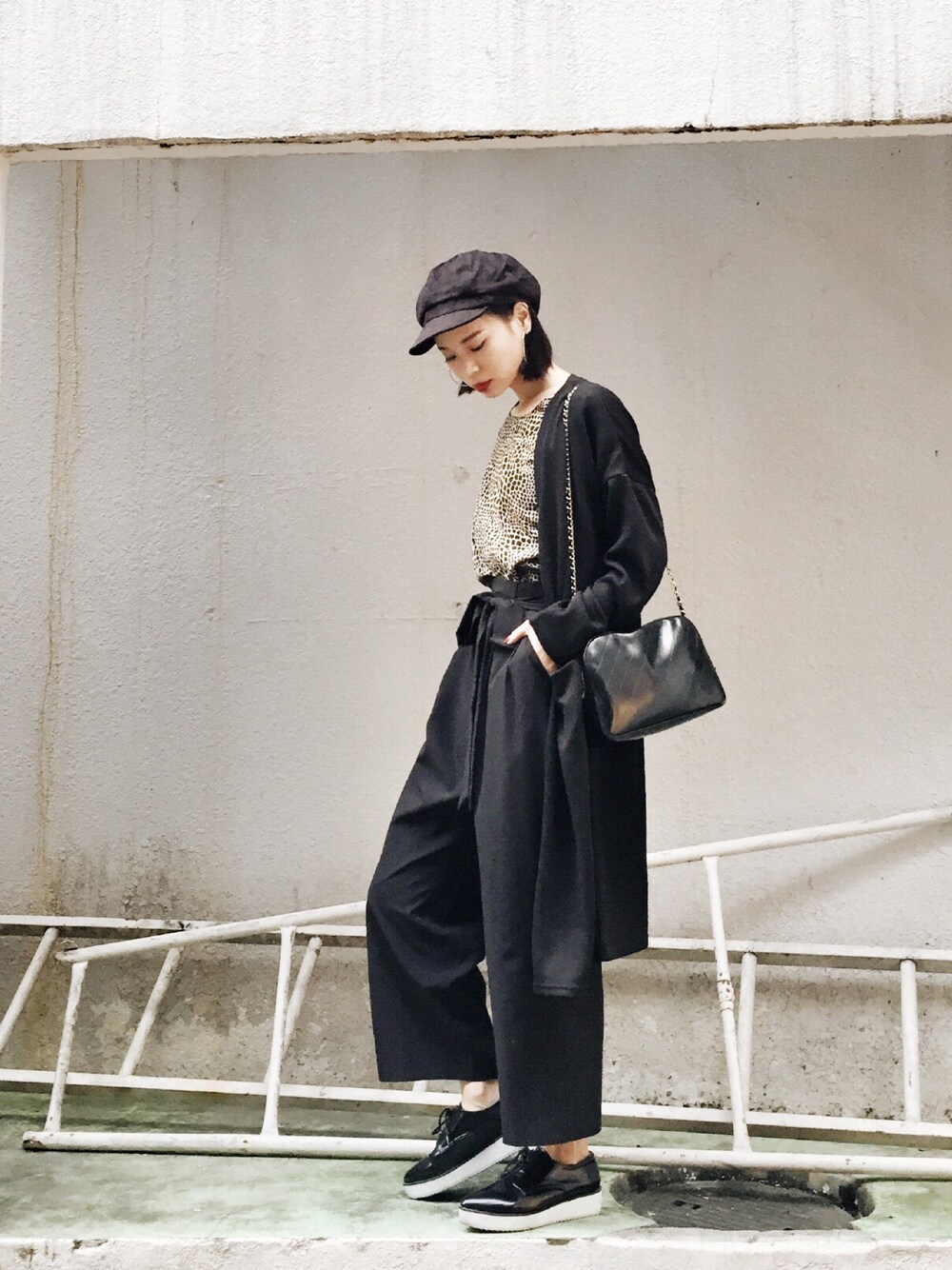 トップスがヒョウ柄でパンチ強めだったので、ヒョウ柄以外は黒でまとめてみました👌🏻