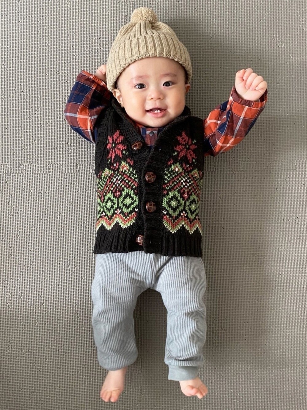 なんだか今日はアップになってしまいました ●ニット帽 500円 ●チェックシャツ 2570円(セール) ※セットアップの半分だけ使用のため半額の1285円で計算 ●ニットベスト 1500円位(セール) ●レギンス 690円 合計3975円