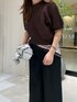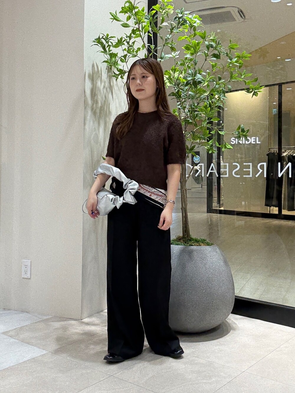 ITEMSのニットトップスを着用しました! ニット生地の半袖で秋っぽさがあるので、 今の季節の変わり目の時期にちょうど良く 着ていただけるかとおもいます🍂