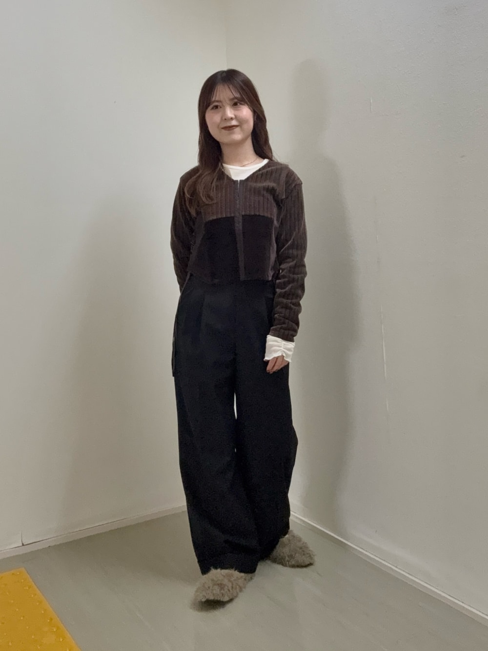 トップスはパッチワークのデザインなのでカジュアル見えしますが、 コンパクトなサイズ感なのでフレアスカートやワンピースを合わせて綺麗めコーデにも使っていただけます✨