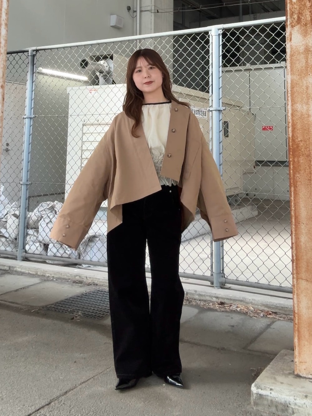 アウターは、後ろから見ると肩に大きめのタックが入っているので 生地にたっぷり感がでてかわいいです✨ ブラウスは、ウエストがキュッとなるので シルエットがよく目立ってくれます^^ ボリューム感ありますが、そのおかげでスタイルアップして着ていただけます!