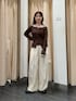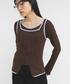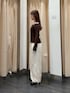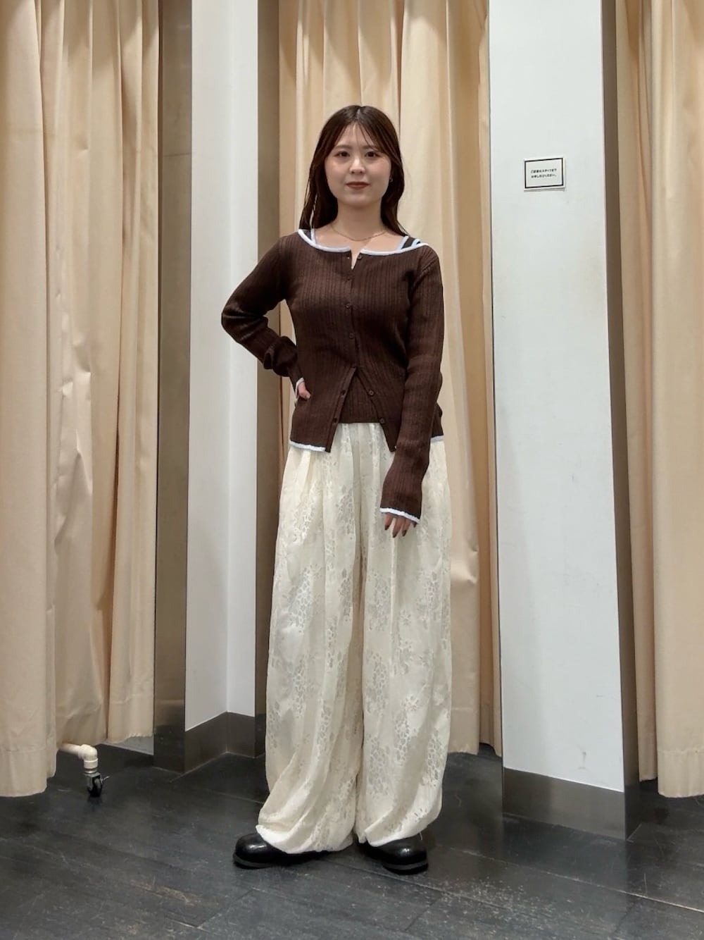 トップスは、デコルテの空きが広めで タイトなので女性らしく着ていただけます! タイトめトップスには、ワイドパンツなど ボリューム感あるボトムス合わせがおすすめです^^