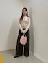 ピンク×ブラウンの組み合わせが おしゃれ見えしておすすめです♪ トップスは薄手なので今の時期は、 ジャケットのインナーに忍ばせるのが可愛いかなっと思います^^ パンツはたっぷりタックが入っていて太めで、タイトなトップスとの合わせのシルエットが 個人的には好きでした!