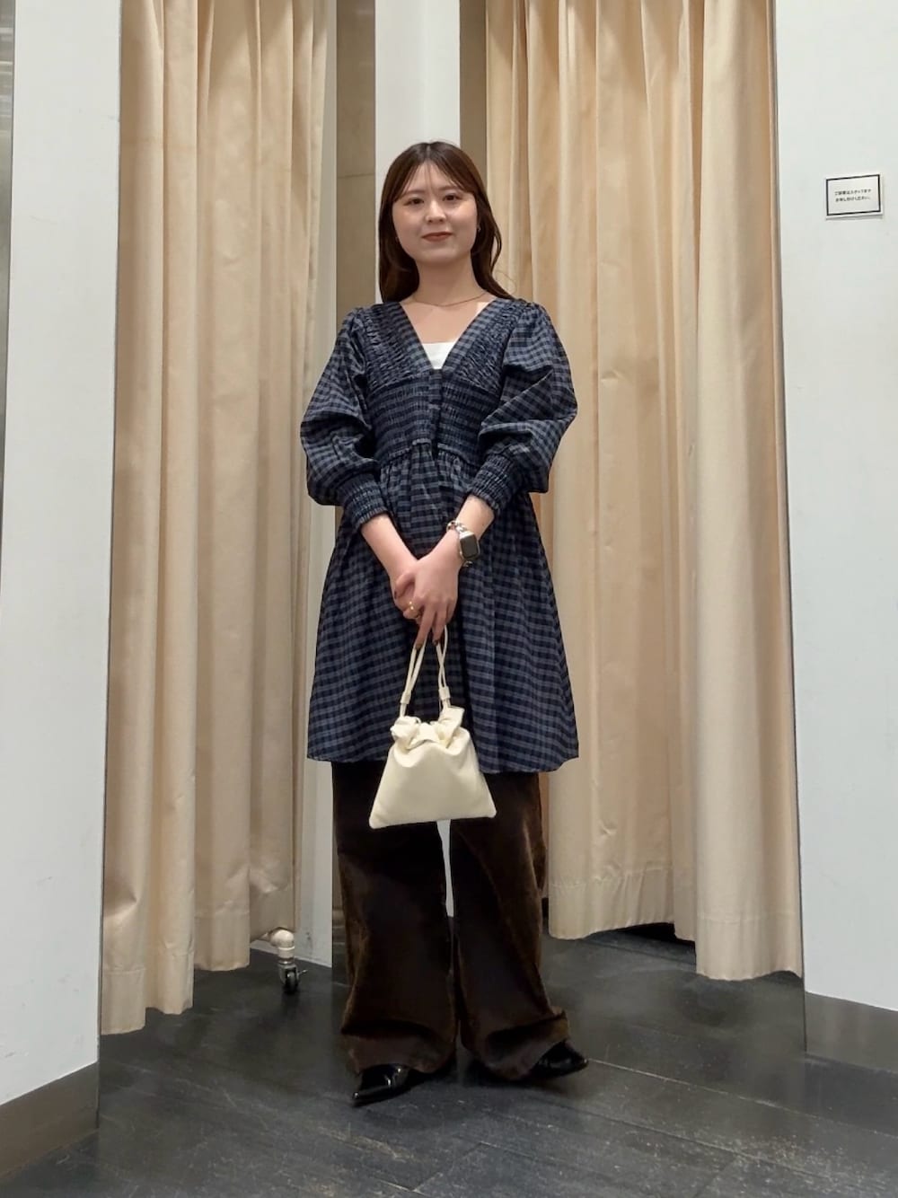 r i n k o (KBF ピオレ姫路)のワンピース「2WAYシャーリングチェックミニワンピース」を使ったコーディネート
