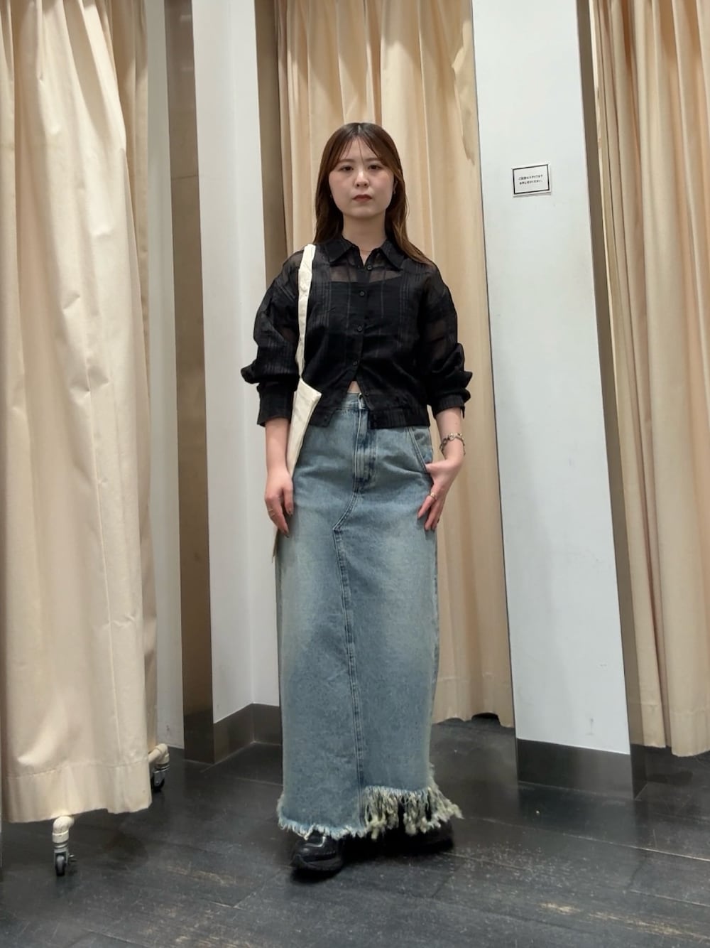 カジュアルにならず、大人っぽく、 女性らしく着れるチェックシャツ 個人的におすすめアイテムです✨ パンツでもスカートでも、 クロップド丈なので合わせやすいです!! デニムスカートの アシンメトリーなフリンジも アクセントになってかわいいです♪