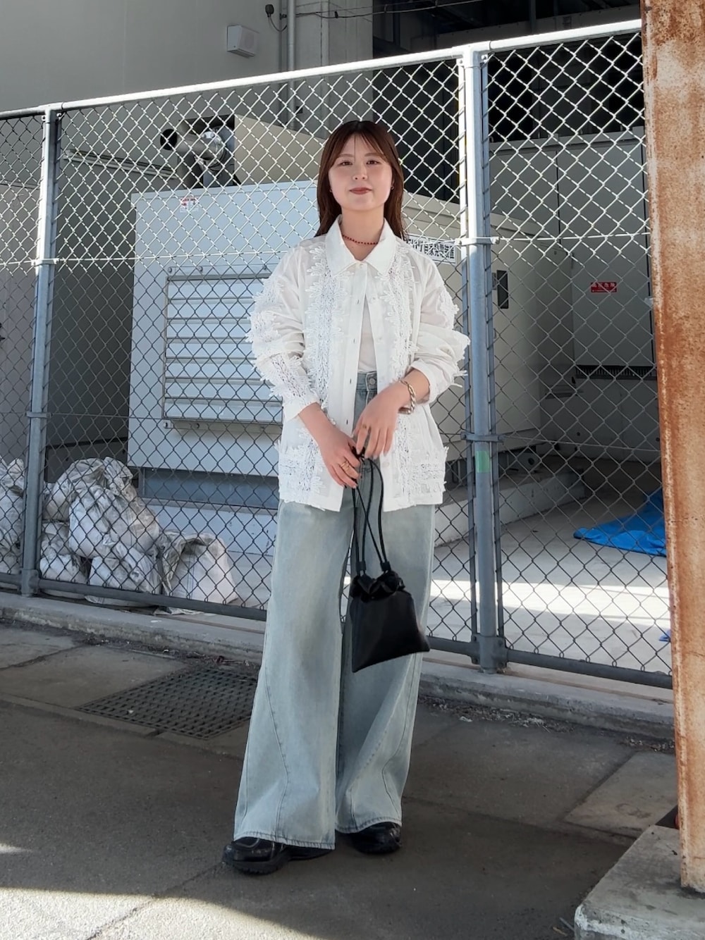 白ブラウス×ライトブルーのデニムで the春!なコーデに🌷 去年人気だったWIDEレッグアジャストデニムが、 新作newカラーで入荷しました! ワイドなのにスッキリみえるシルエットが 大好きだったので嬉しいです♪ おすすめのデニムです!