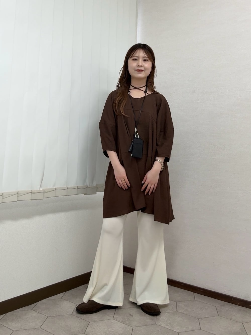 紐のアレンジで雰囲気を変えて 着ていただけるミニワンピース👗 安心感のある丈感なので、 私は細身のフレアパンツと合わせるのが バランスよく着れるのでおすすめです✨