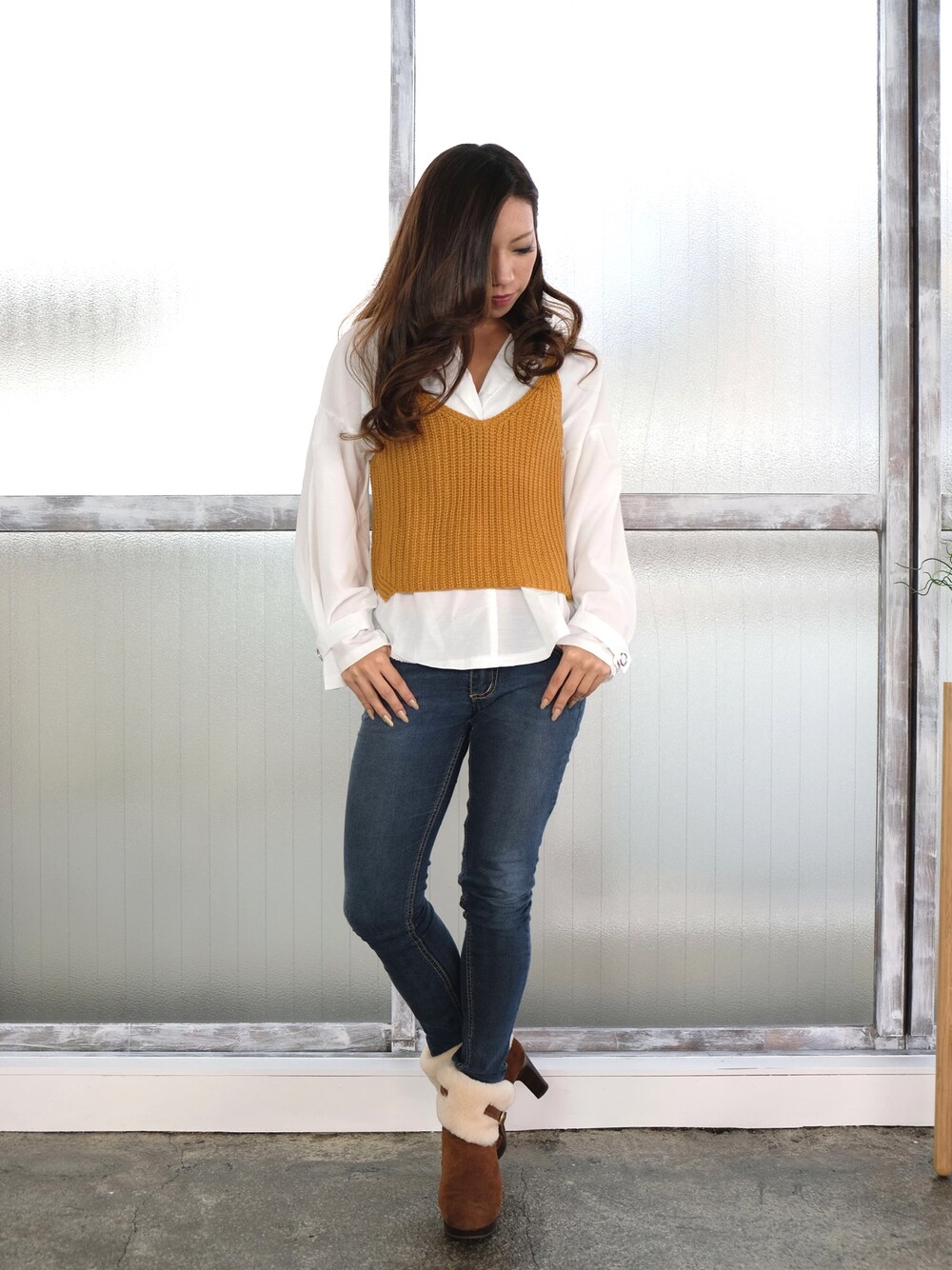新作テーラードベルスリーブシャツとニットキャミを合わせてみましたー🎵
