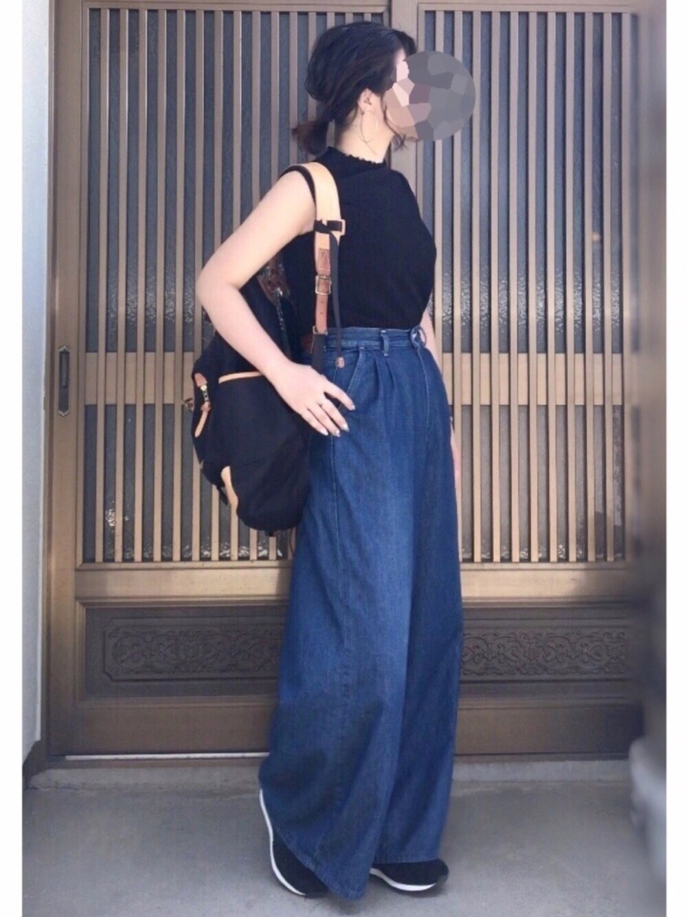 親友とディズニーに行った時の。 黒ノースリーブにデニムワイドパンツ 黒リュックにスニーカーで 完全リンクコーデでした👭 ボトムスはやっと見つけた理想シルエットのデニムパンツで、かなり履きやすくて早速お気に入りです◎