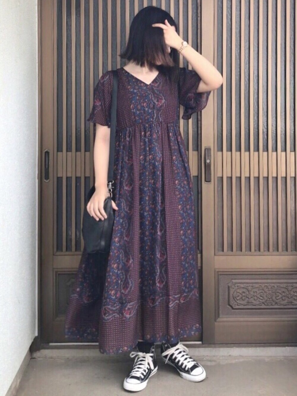 ありのワンピース「KBF+ エスニックプリントVネックワンピース」を使ったコーディネート