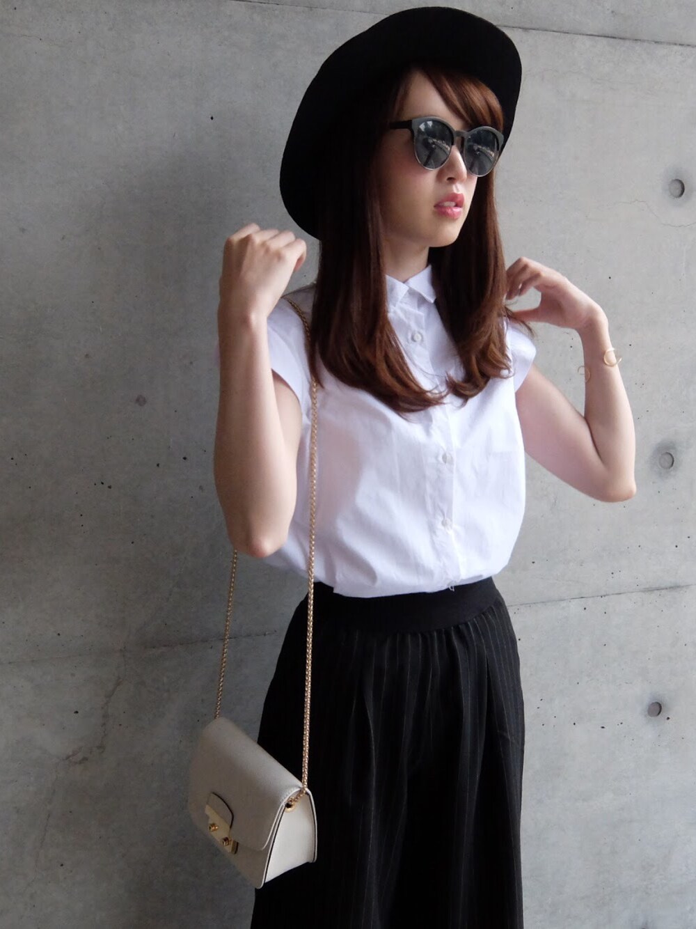 ホワイト系のトップスを着用したレディースの夏コーディネートの1枚目の写真