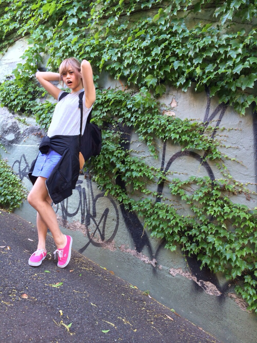 今日はお天気が最高に良かったので、 スポーティーカジュアルに。 シャツをレイヤードしてみえるスカートがポイントです!