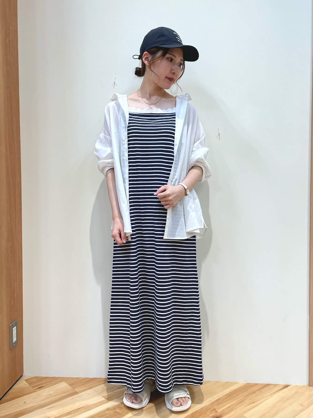 キャミワンピースに白シャツを合わせて爽やかな夏らしいコーデにしました☺︎ 袖を捲ってこなれ感を出して大人っぽく✨