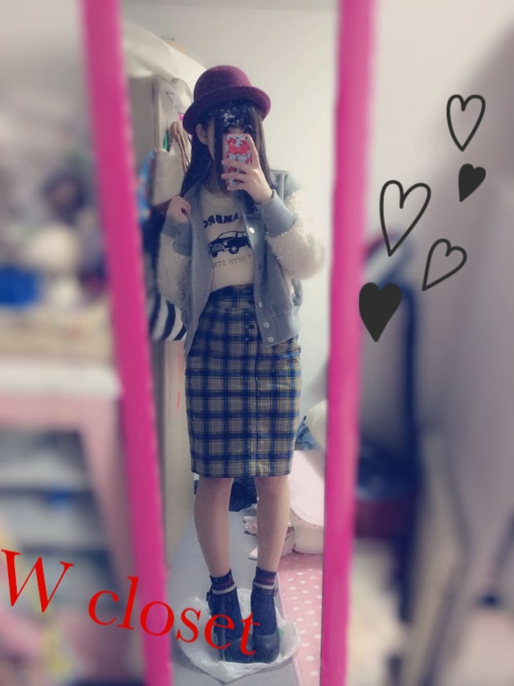 膝丈のタイトスカートはコーデュロイ素材で冬っぽいです\( ˆoˆ )/ストレッチ効いてて歩きやすい♡ ただ、タイトスカートってぽっこりお腹が目立たつ…笑 車のプリントのニットは最近よく着てます♪