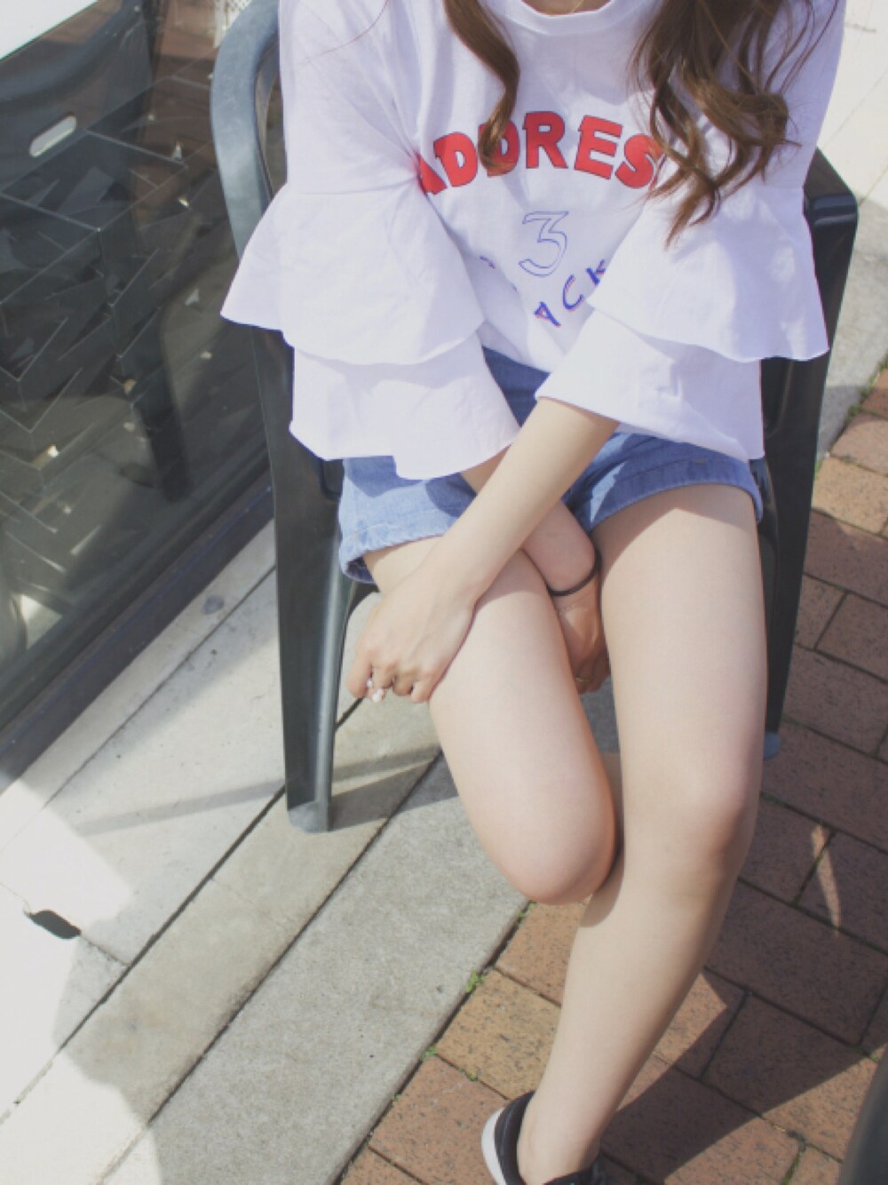 ホワイト系のトップスを着用したレディースの春コーディネートの1枚目の写真