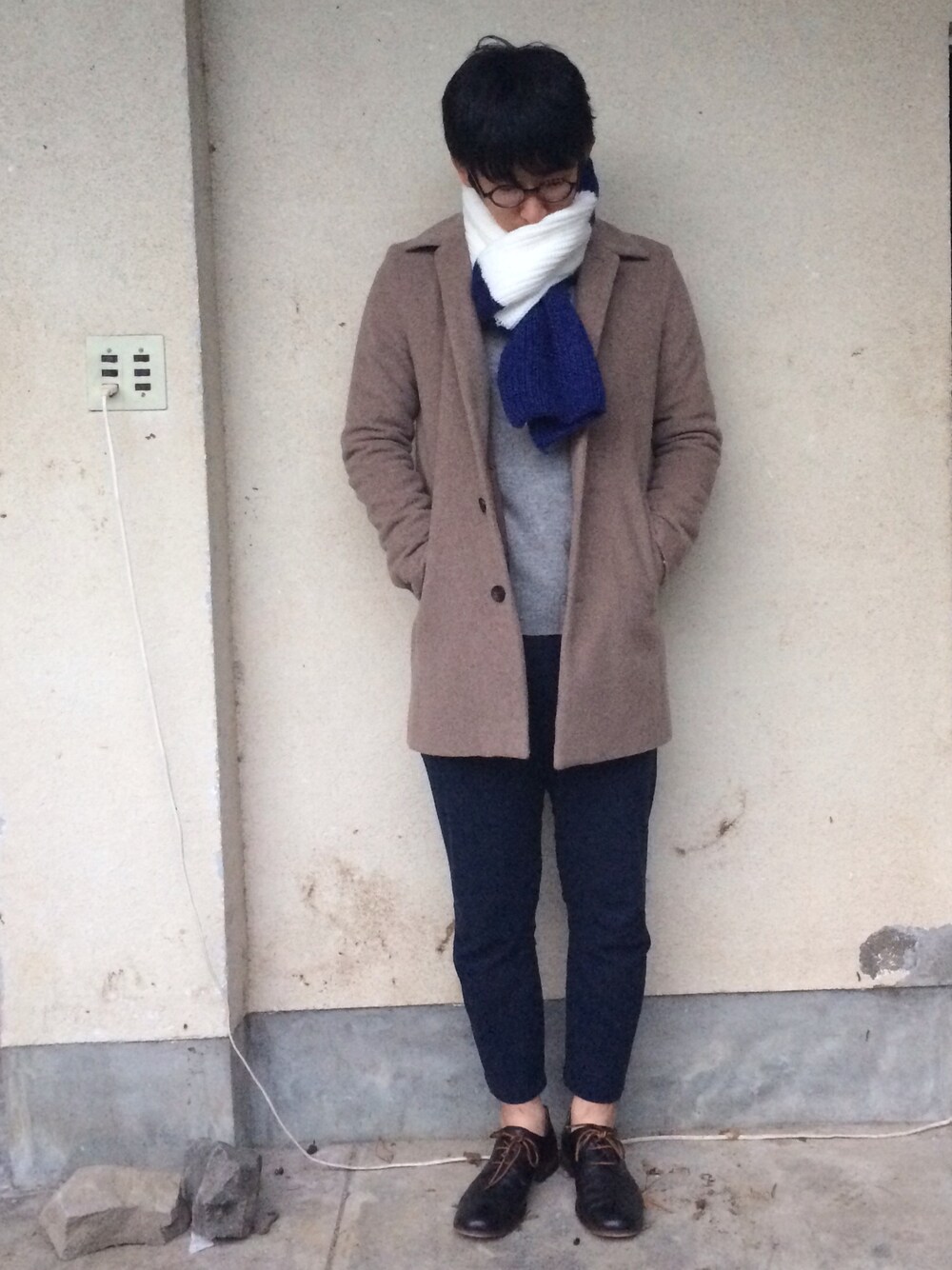 Aリスのステンカラーコート「STUDIOUS カシミアウールメルトンステンコート」を使ったコーディネート