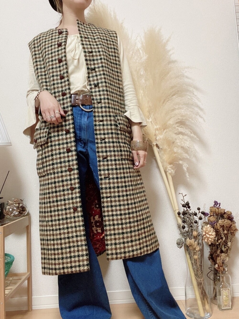いつかのコーデ ワンピースをロングベスト風に🍃
