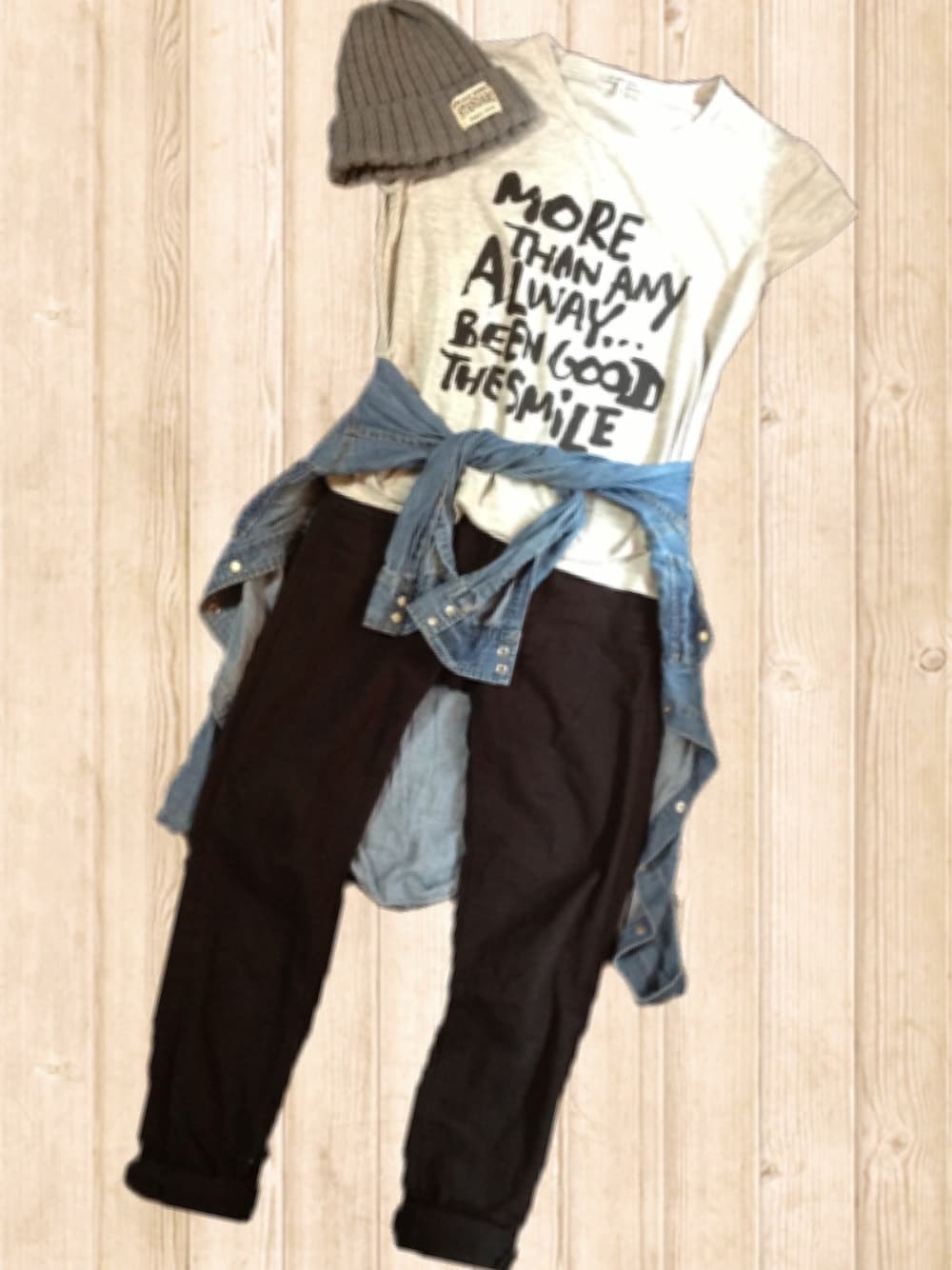 ニット帽:楽天 Tシャツ:GLOBAL WORK 黒スキニー:SLY 写メにはないけど、ボーダーのエスパ:しまむら 昨夜は高校の飲み〜 服装かぶるかぶる!笑 トップス以外一緒の子もいたw