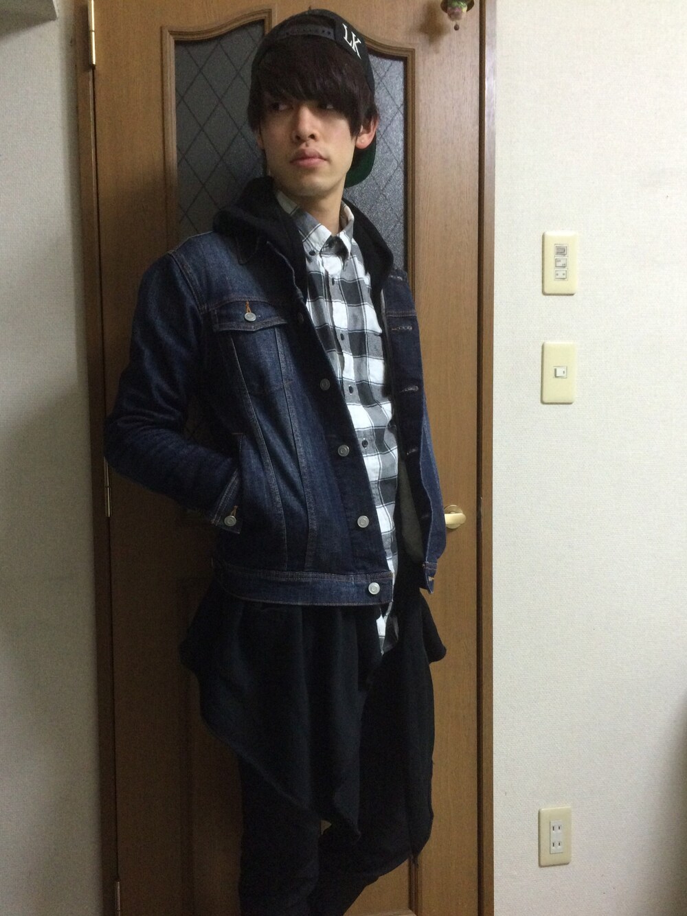 ストリートっぽく?してみた! ジージャンの中は変形パーカーです!
