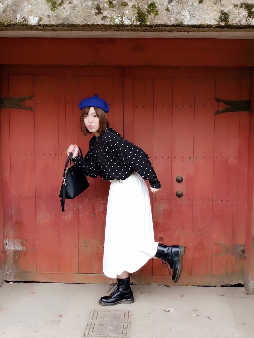 奈良大仏コーデだ! beret:no brand necklace:used(母のお古) tops:used(母のお古) bottom:GRL bag:kete spade new york