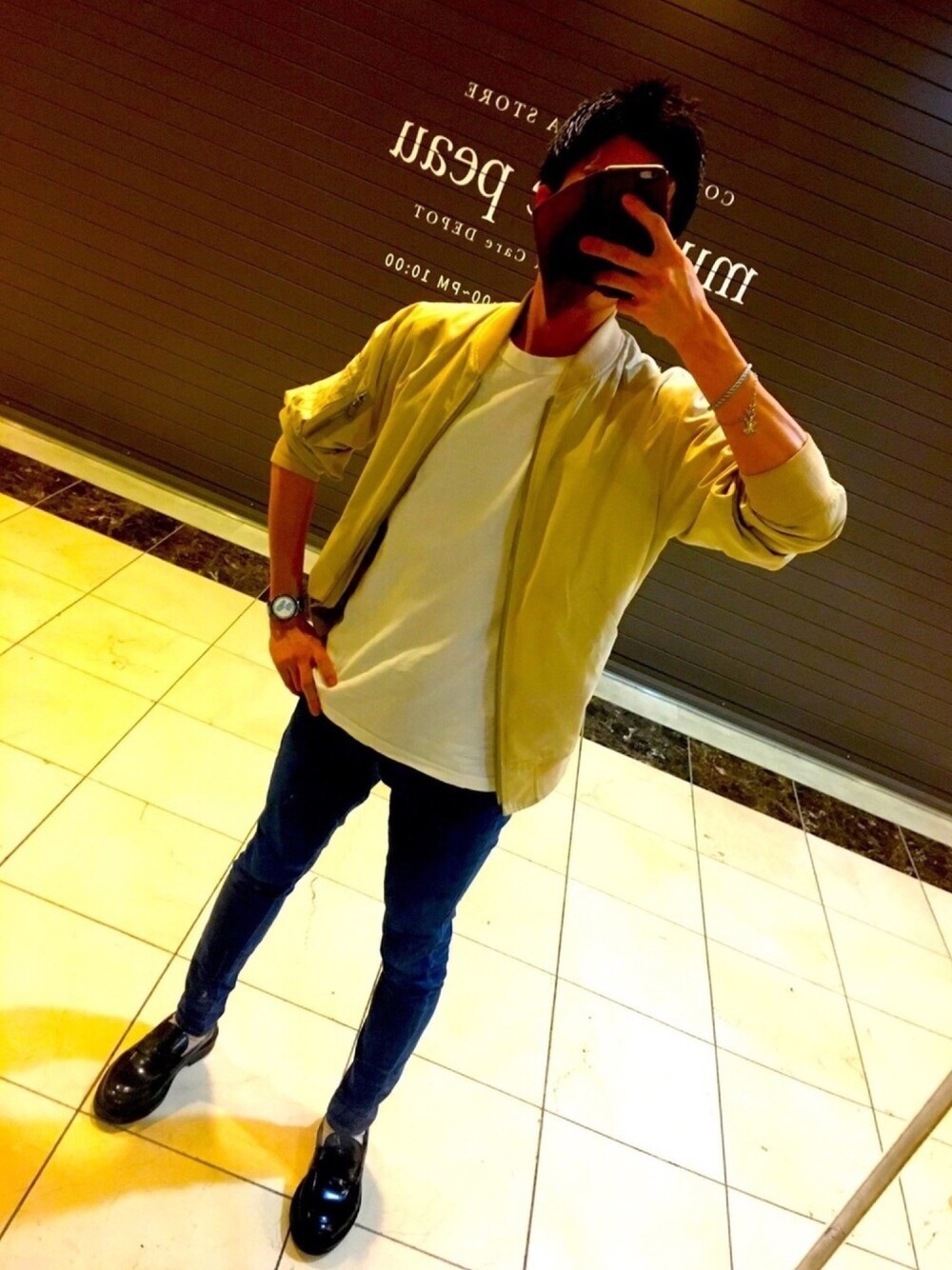 こんばんは! いつも見ていただき、ありがとうございます♪ 久々の投稿です笑 今日は寒かったので7月だけど秋の始めっぽいスタイルにしました♪ 色だけでも夏っぽさを出そうと明るい色にして、靴をブラックローファーにして締めてます😆