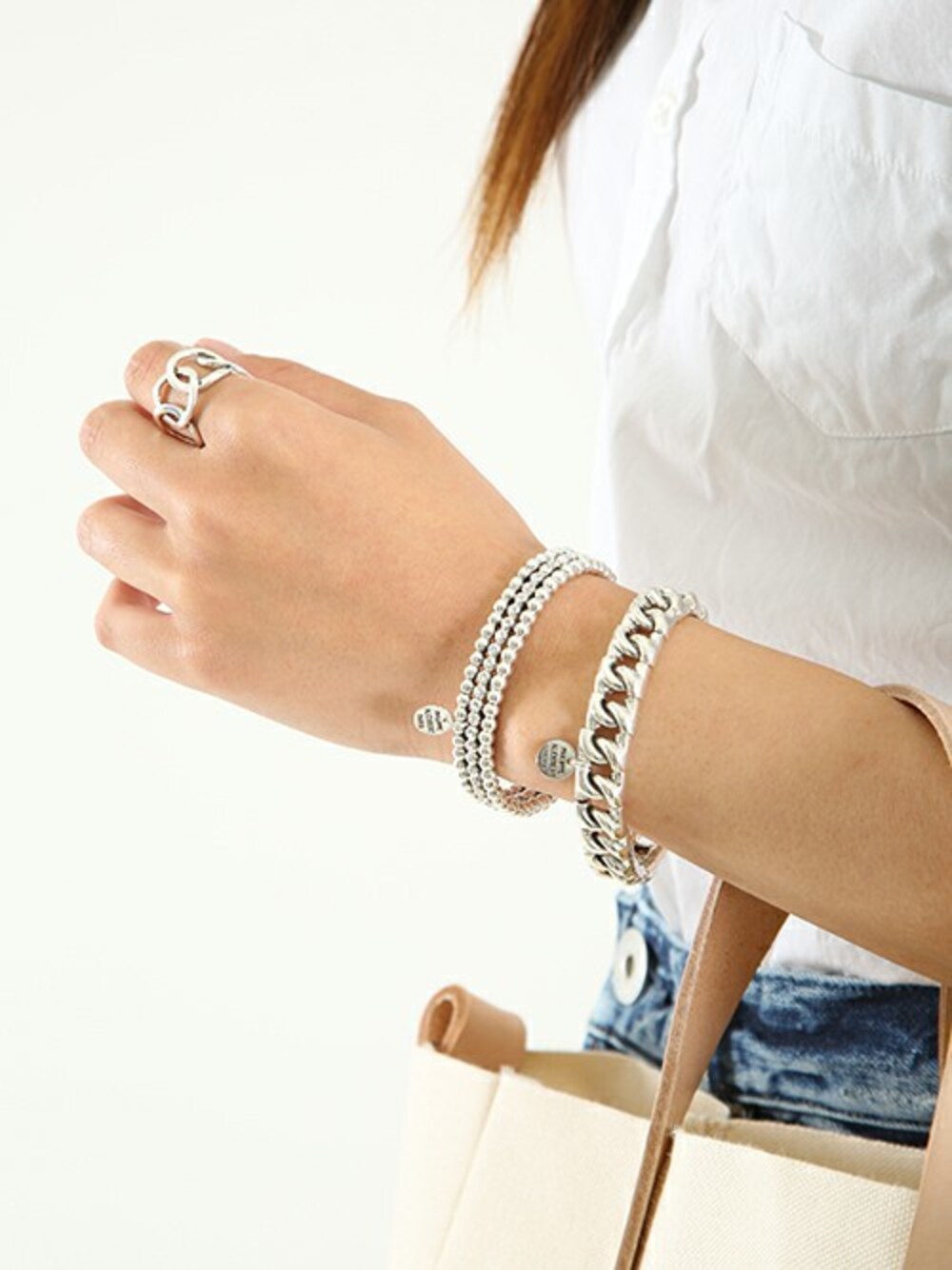 5つのサークルが、隣同士のサークルと繋がっているデザインのリングです。