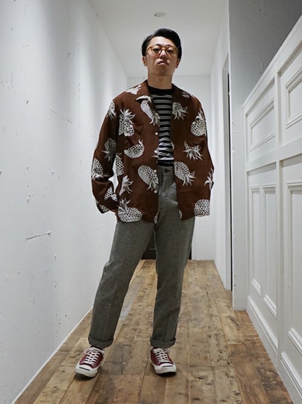 ARKnets STAFF(ARKnets)のシャツ/ブラウス「marka / マーカ:OPEN COLLAR SHIRTS L/S - ALOHA -:アロハシャツ:M18A-09SH01C[COR]」を使ったコーディネート