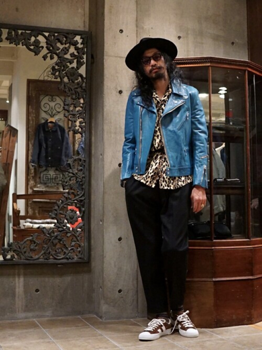 Lewis Leathers(ルイスレザーズ)にWACKO MARIA(ワコマリア)のアロハシャツ。雰囲気も合うのでオススメです。シャツの着丈のバランス調整に用いたベルトは COLINA(コリーナ)のハンドメイドナローベルトです。