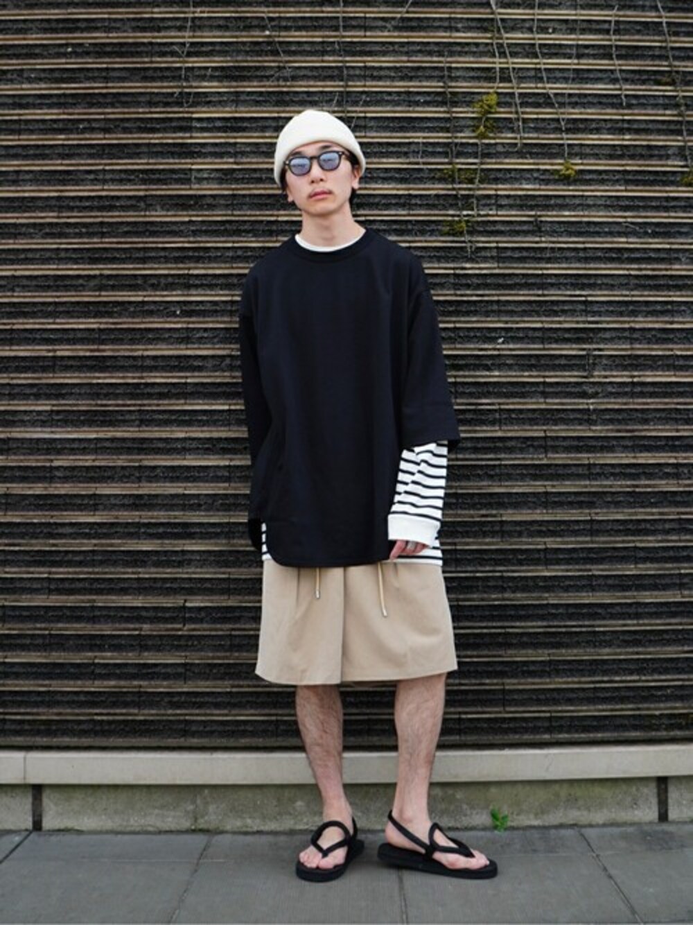 BALLAST ARKのボーダーロンTをインナーとしてレイヤードで使ってみました。ざっくりと大きめに作られたサイズ感、印象が軽くなる白が多めの配色が魅力的です。
