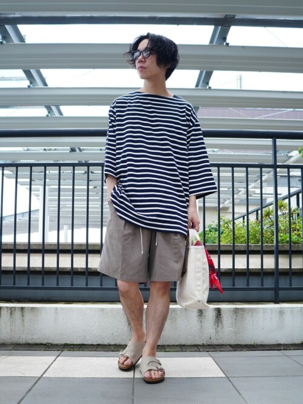 ビッグシルエットのBIG BASQUE TEEを合わせました。 バスクシャツではあまり見られないハーフスリーブのモデルのため、 これからの季節にもピッタリなTシャツとなっています。