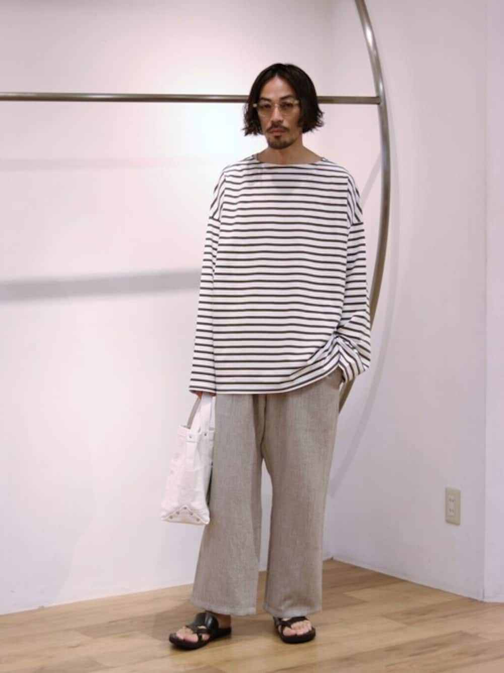 marka<マーカ>のバスクシャツを使ってコーディネートを組んでみました。即完売してしまったバスクシャツが待望の再リリース!今回新たに加わった新色ホワイト×オリーブは、ARKnetsとmarka直営店のPARKINGでしか手に入らないエクスクルーシブカラーです。秋にも活躍してくれるオーバーサイズバスクシャツ、この機会にぜひ。