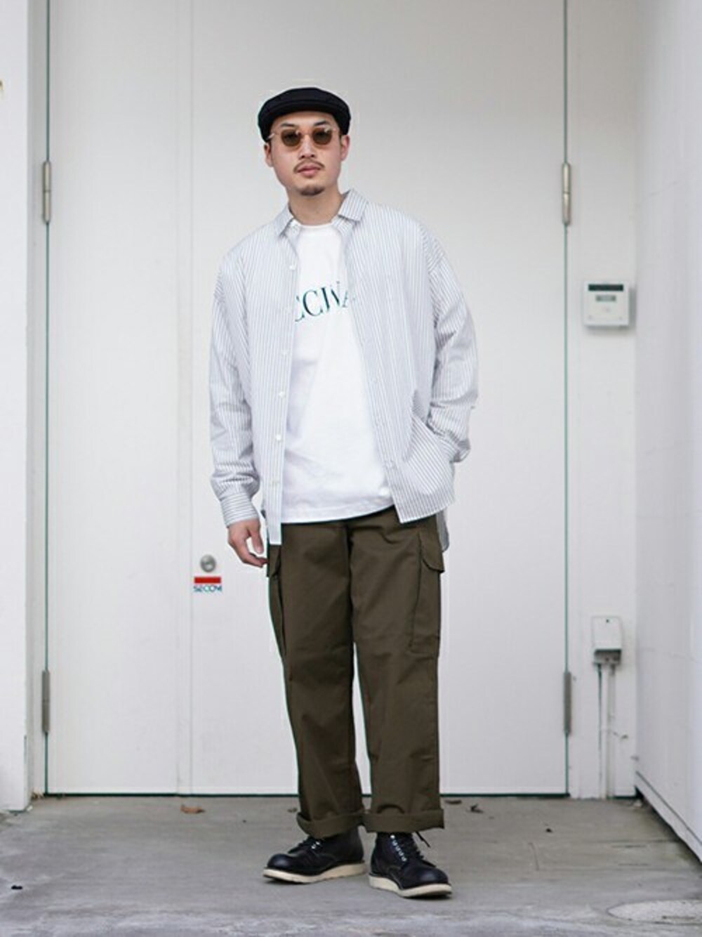 PORT BY ARK (ポートバイアーク)の「Regular Collar Shirt (レギュラーカラーシャツ)」を使ってコーディネートしてみました。 カジュアルウェアながらもクラシカルなドレスシャツをベースに製作した品を感じさせる一着です。