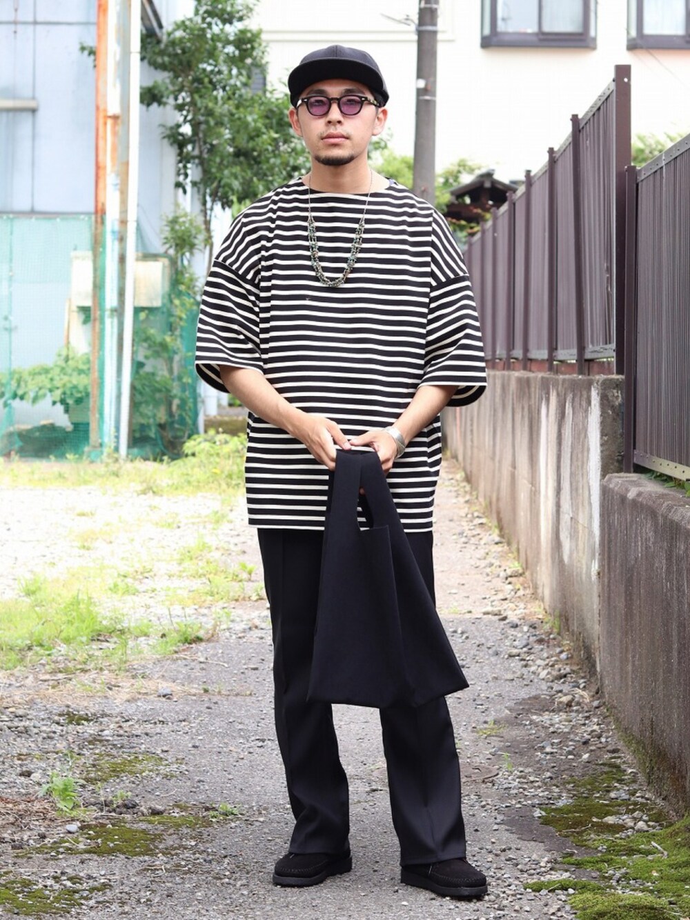 marka(マーカ)の新作の半袖のバスクシャツを使用したコーディネートを組んでみました。 パンツはN.HOOLYWOOD(エヌハリウッド)のラングラーコラボのパンツを使用しております。
