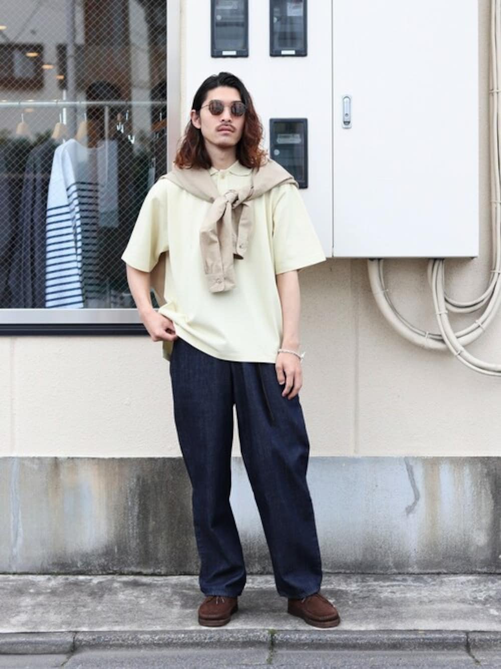 ポロシャツとPORT BY ARK(ポートバイアーク)のシャツを合わせて爽やかな印象に。デニムスタイルはシンプルになりがちで少し物足りない時にシャツを使い、コーディネートのマンネリ化を防いでくれます。