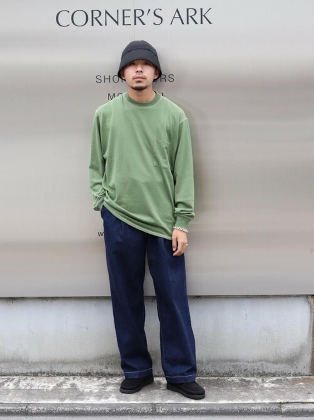 ARKnets STAFF(ARKnets)のデニムパンツ「marka / マーカ:1TUCK CREASE JEANS - organic cotton 12oz denim -:M22C-01PT03C[COR]」を使ったコーディネート