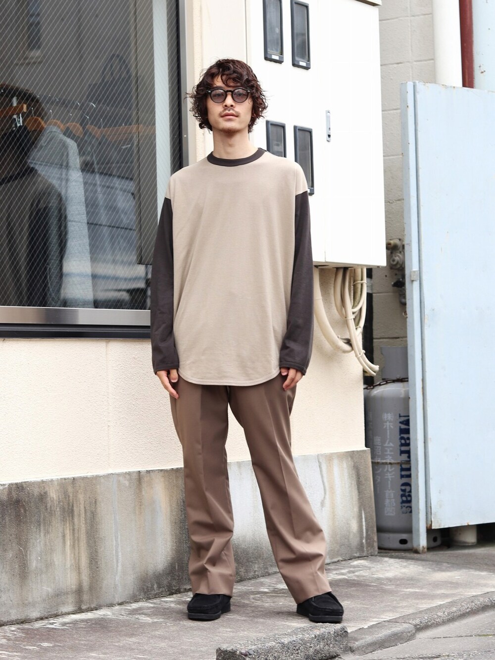 marka(マーカ)のラグランカットソーを使用しtスタイリング。ブラウンの色味のラグランなのでカジュアルなアイテムだけどどこか落ち着いた雰囲気に。パンツにはWEWILL (ウィーウィル)のスラックスを使用してシルエットを綺麗に。アウターにはINNAT(インアット)のM-65パーカーとライナーコートをレイヤード。どちらもざくろから抽出したボタニカルダイによって染色しているので発色の良さが目立つINNAT(インアット)ならではのアイテムたち。