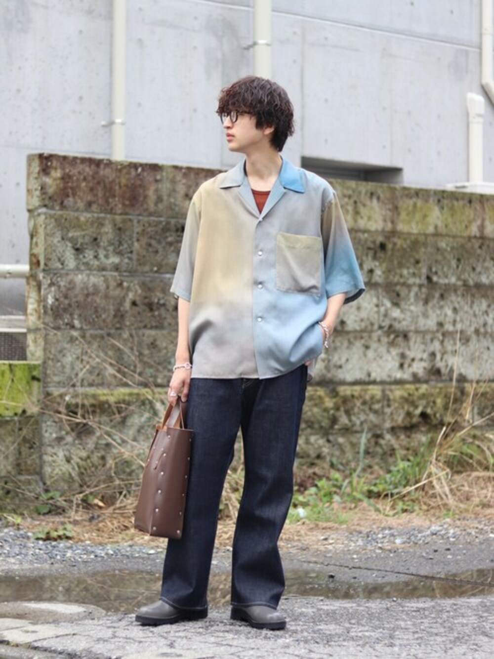 【YOKE (ヨーク) :PRINTED OPEN COLLAR SHIRT】◇身長 / 181㎝ ◇普段サイズ / MまたはL ◇着用サイズ / サイズ3番 ◇ひとこと:YOKE (ヨーク)の23SSコレクション新作アイテム「PRINTED OPEN COLLAR SHIRT」を使用したコーディネートです!