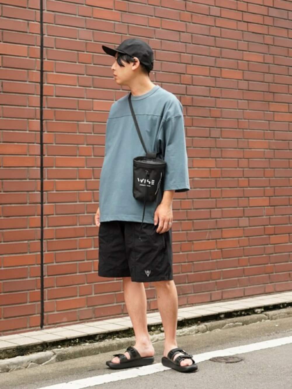 【170㎝・56㎏】 GOLDのフットボールTシャツはMサイズでゆったり着用してます。 South2 West8のセンターシームショーツはSサイズでジャストサイズです。太めなのでトップスが大き目でもバランスがいいです。チョークバッグは別注 WISE × ARKNETS(WP)コラボ のスペシャルアイテムで、 ショルダーバッグとしてもウエストバッグとして腰につけてもアクセントになってくれます。