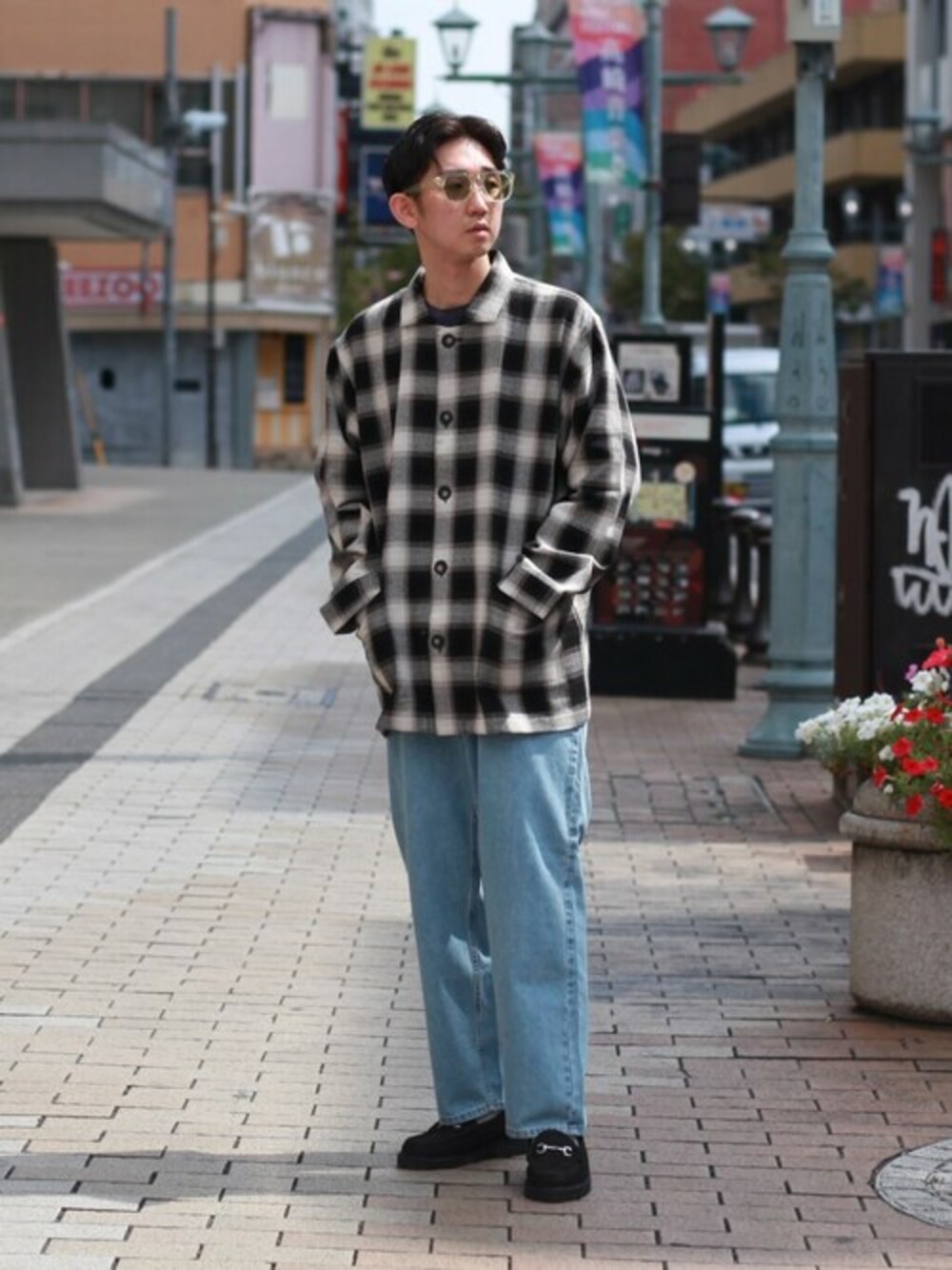 BALLAST ARKのPAJAMAS SHIRTを中心にスタイリングを組みました。今回はLサイズを着用してみました。インナーにパーカーなどを着用できるゆとりがあります。