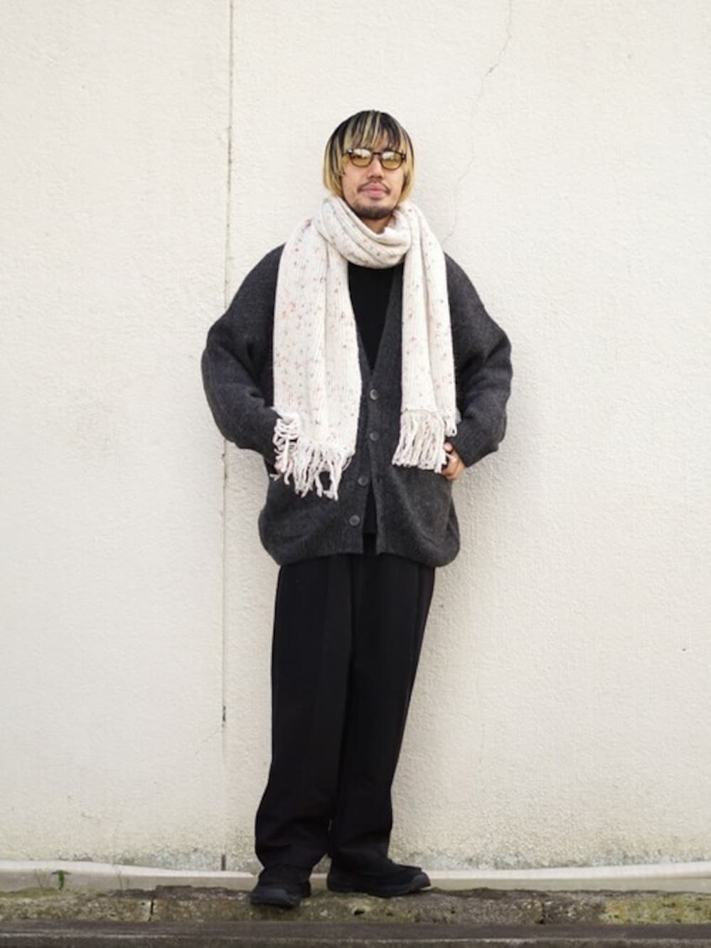 BALLAST ARK(バラストアーク)のSHAGGY NEP MUFFLERをベースにスタイリングを組んでみました。ギフトアイテムとして非常に優秀なマフラーです。ブランド定番の型でもある「TUCK EASY PANTS」も秋冬仕様でリリース。