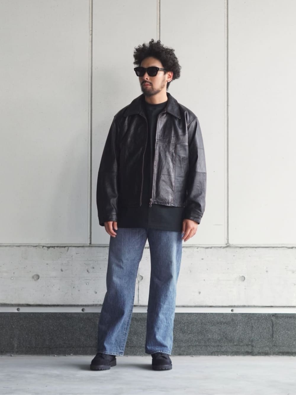 BALLAST ARK(バラストアーク)の革ジャケットをメインにコーディネートを組んでみました。今回身長170cm/体重70kgでMサイズを着用しております。インナーは厚手の半袖です。着用感はぴたっとした感じですが、かといって関節周りの動きにくさは0でした。自身の体型で厚手のスウェットやパーカーを用いるとしたら少しきつそうな感じでした。春、秋メイン着用もしくは冬のインナーとしての革ジャン。今年こそは、と思っている方に是非推したい一品です。癖も無く、ダブルジップで可動性も確保される。最高です。