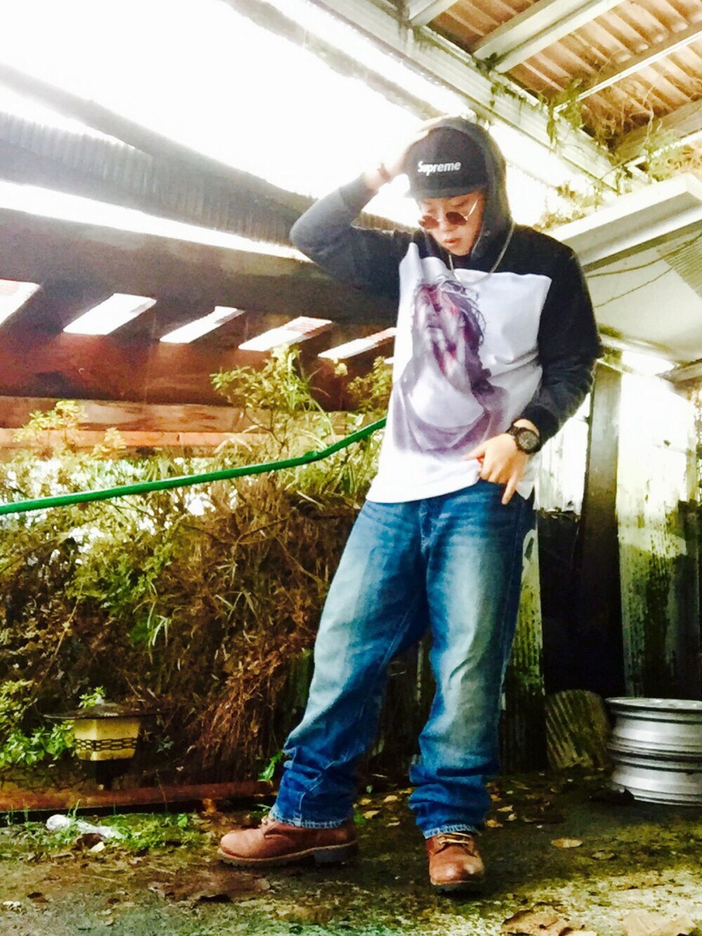 今日のコーデ!雪降ってる❄のにフットボールTを合わせるっていう(笑) このSUPREMEのJesusfootballTが欲しくて欲しくて1年 やっと買いました!夏にも冬にも使えるし、デザインがめっちゃお気に入り!もうずっと着まわします(笑) キャップは冬被ってもいいように、 SUPREMEゴアテックス2toneニューエラコラボの黒です!こちらもお気に入りなのでめっちゃかぶります(笑) 水が中まで通らないのに蒸れないのがいい!! ゴアテックスのシールはあんま好きじゃないのでつい剥がしちゃいました(笑)(๑>•̀๑) 私事ですがスケボーやってみたいと思ってて、安く手に入ってまあまあ使える初心者向け🔰ボードがあったら教えてくださいな(笑)