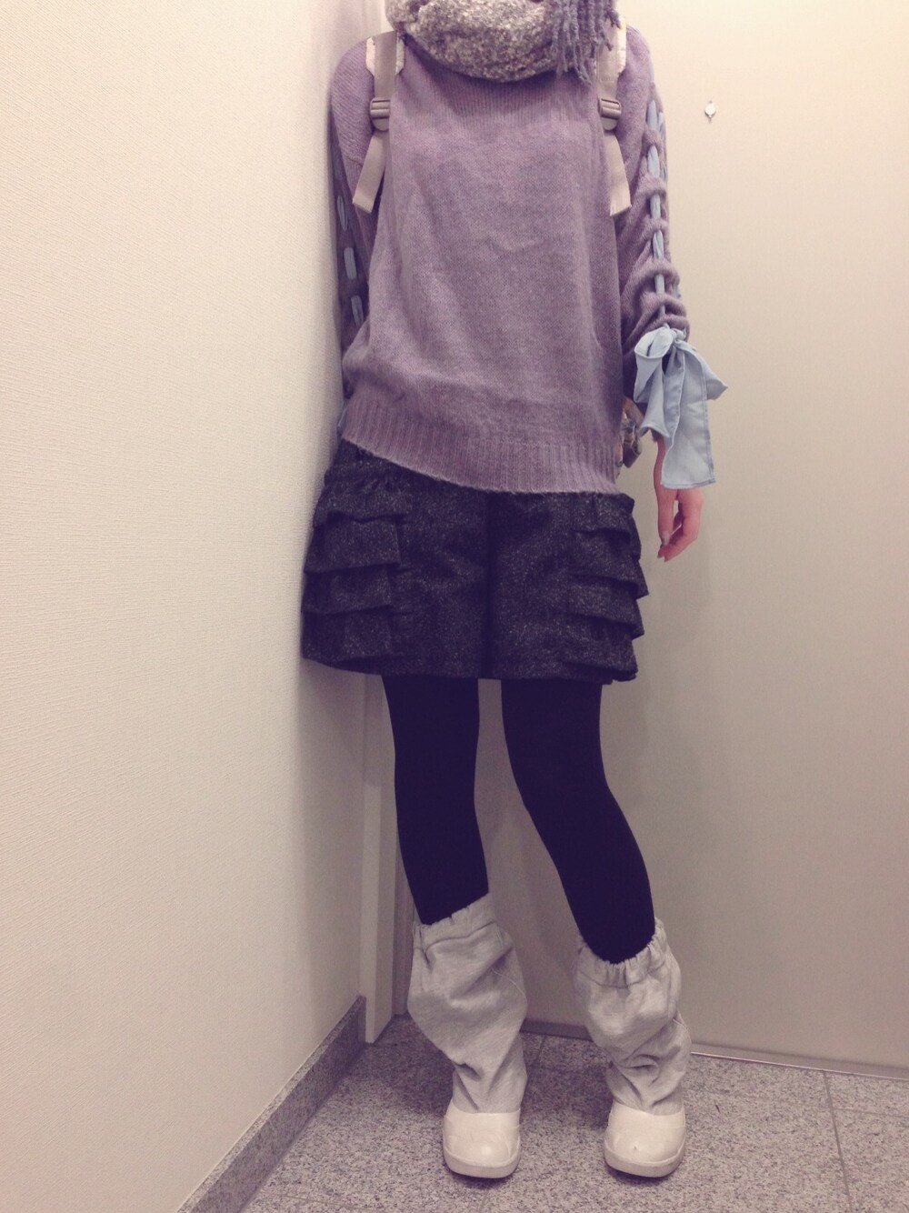 DIESELのブーツはかなり前にセレクトショップで購入。靴と布が一体化してます。 ニットはお気に入り♡でも、食事の時は袖のリボンがお皿に入らないように要注意です…