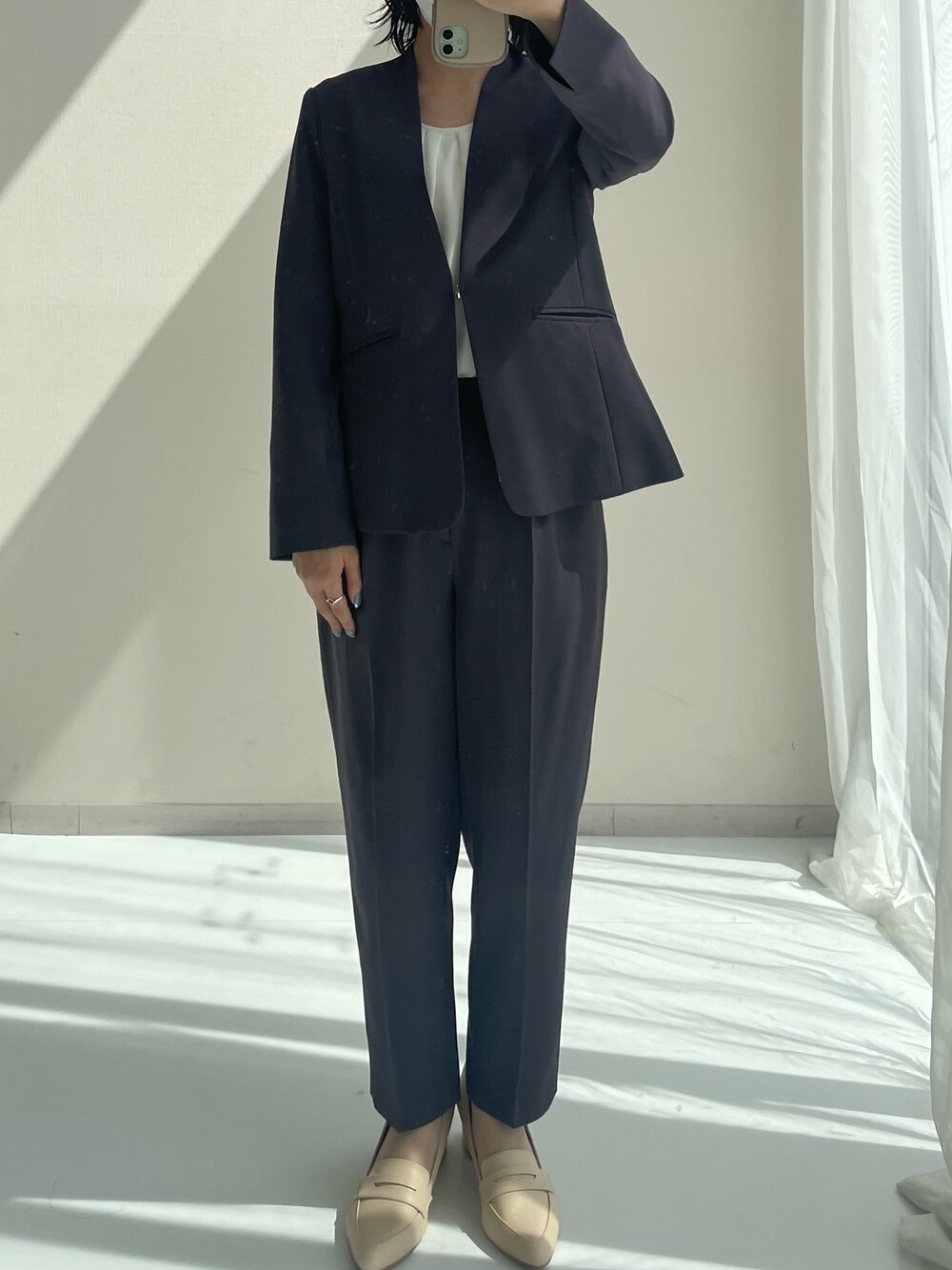 なかなか合うサイズのセットアップはないですが、これはぴったりでした!ウエストもゴムで楽ちんです。ポインテッドトゥのパンプスできちんと感をプラス👍