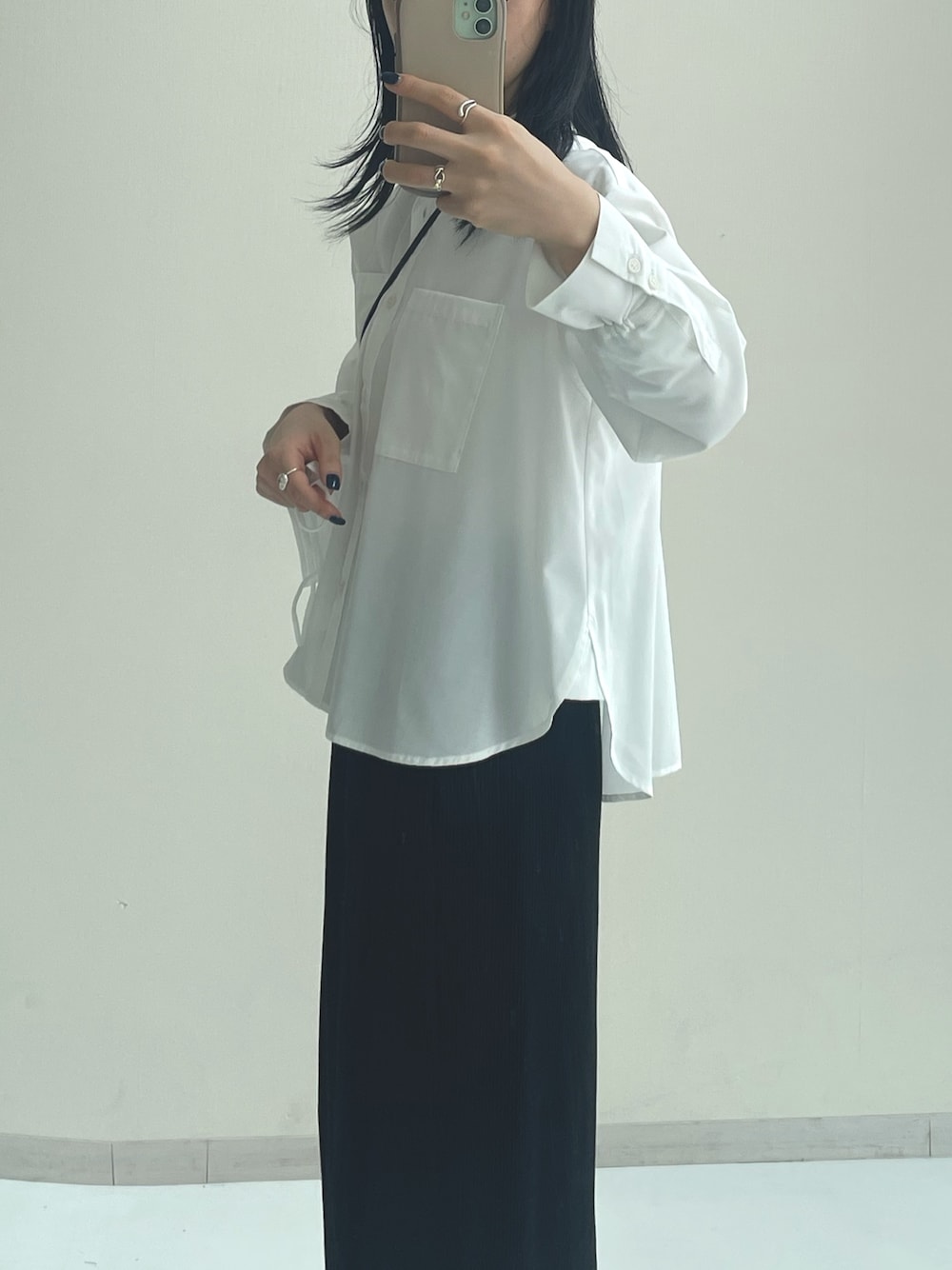 小柄だとなかなかきれいなラインのもろもろに出会うのが難しいですが、 こちらのシャツは小柄でもシルエットがきれいに着れました👍 袖まくりがしやすいように 袖口がゴムになっているのもさりげなくうれしいポイント◎