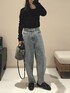 こちらのカーブデニムは小柄設計なので カーブパンツはそのシルエットがポイントですが、 裾上げなしできれいに履けました🥳❤︎ かかとがニッセンオリジナルソールの スニーカー底なのでスニーカーのような履き心地の ローファーあわせ◎